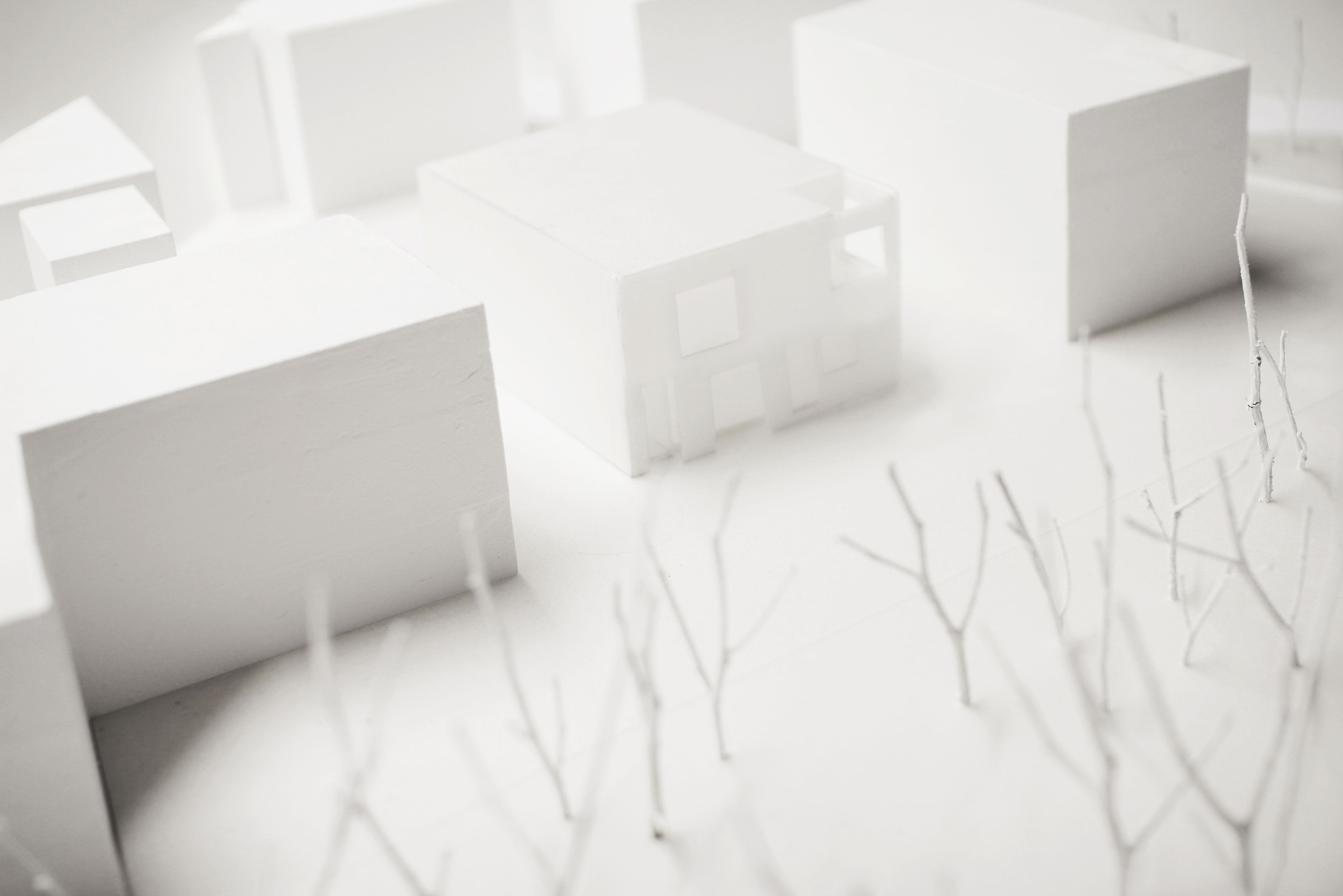 In order to avoid any sense of levels’ separation, the majority of the openings on each elevation are reformed without being aligned and complemented by the interior’s arrangement. The absolute subtraction of the balconies erases the existing spatial extension and division of the first and second level as well as of the terrace.